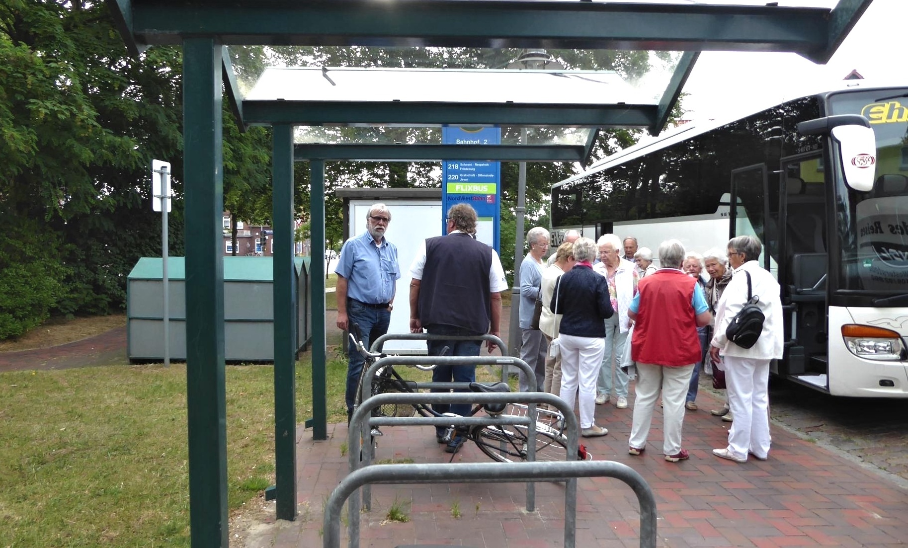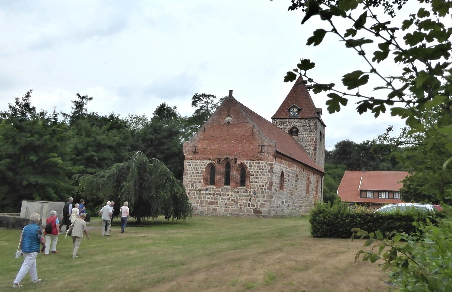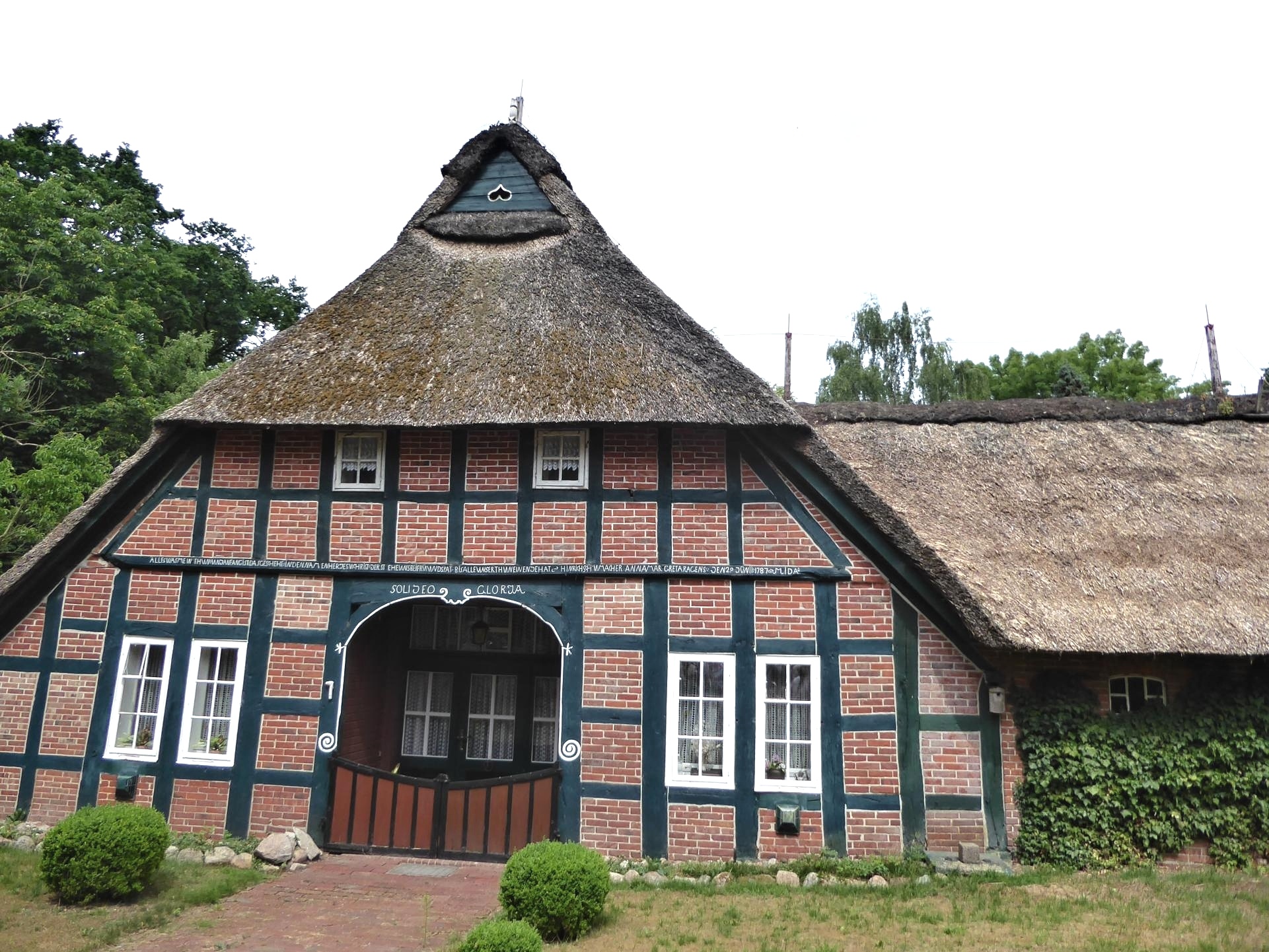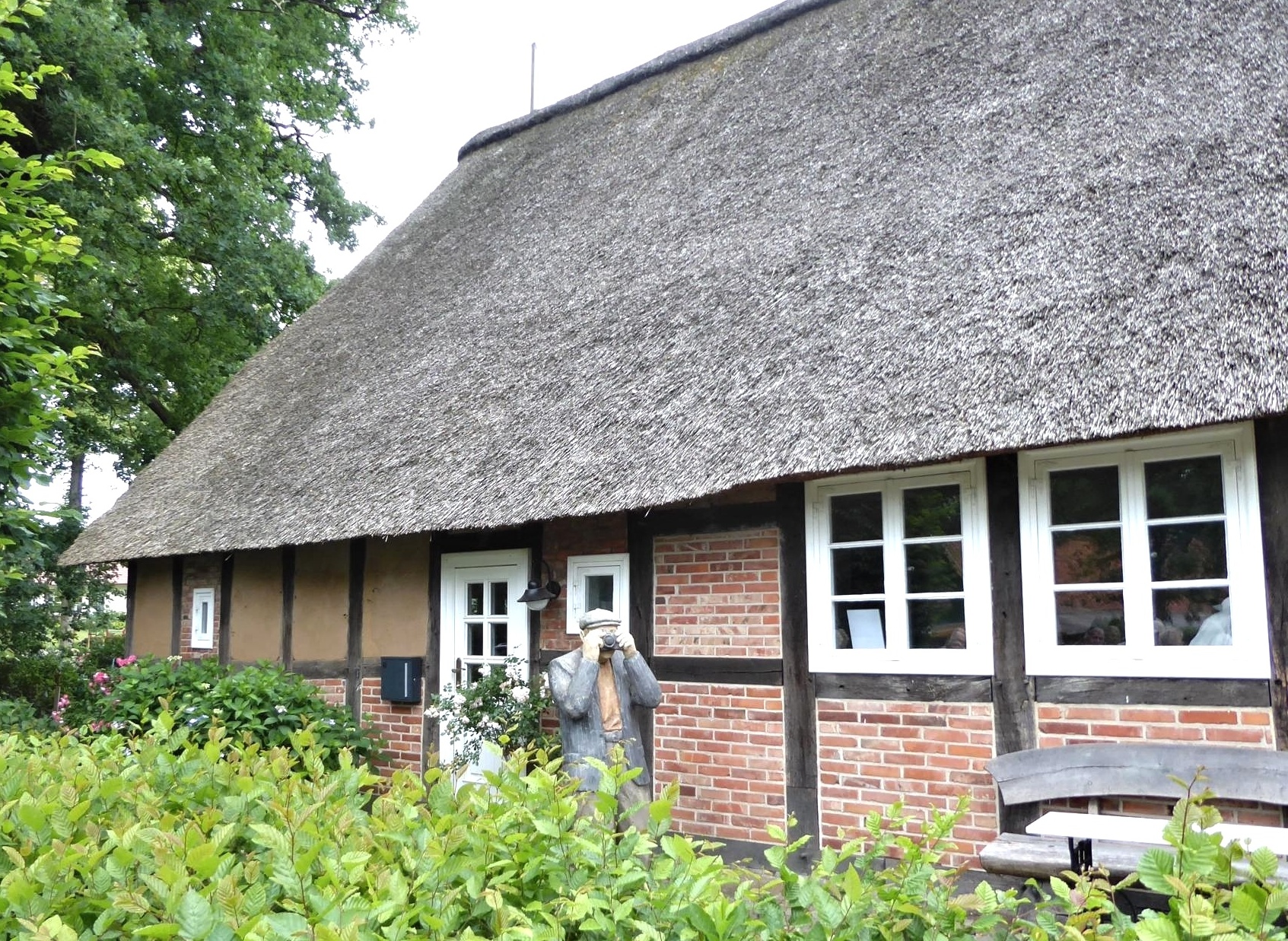 Die diesjährige Fahrt hatte Dötlingen zum Ziel. Nach einer gut einstündigen Busfahrt erwartete uns schon die Gästeführerin vor dem Landhotel zu einem Dorfspaziergang. Es gibt 23 denkmalgeschützte Häuser, die dank einer 1999 in Leben gerufenen Stiftung fast alle instandgesetzt worden sind. Besonders sticht der Tabkenhof hervor, der mit 58m Länge und einer Reetdachfläche von 1600 Quadratmeter das größte Fachhallenhaus Nordwestdeutschlands ist. Die Beschaffung von Reet ist heute schwieriger, denn nur noch wenig kommt aus dem Weserraum sowie aus Polen und Ungarn, sodass 80 Prozent aus China eingeführt werden müssen.