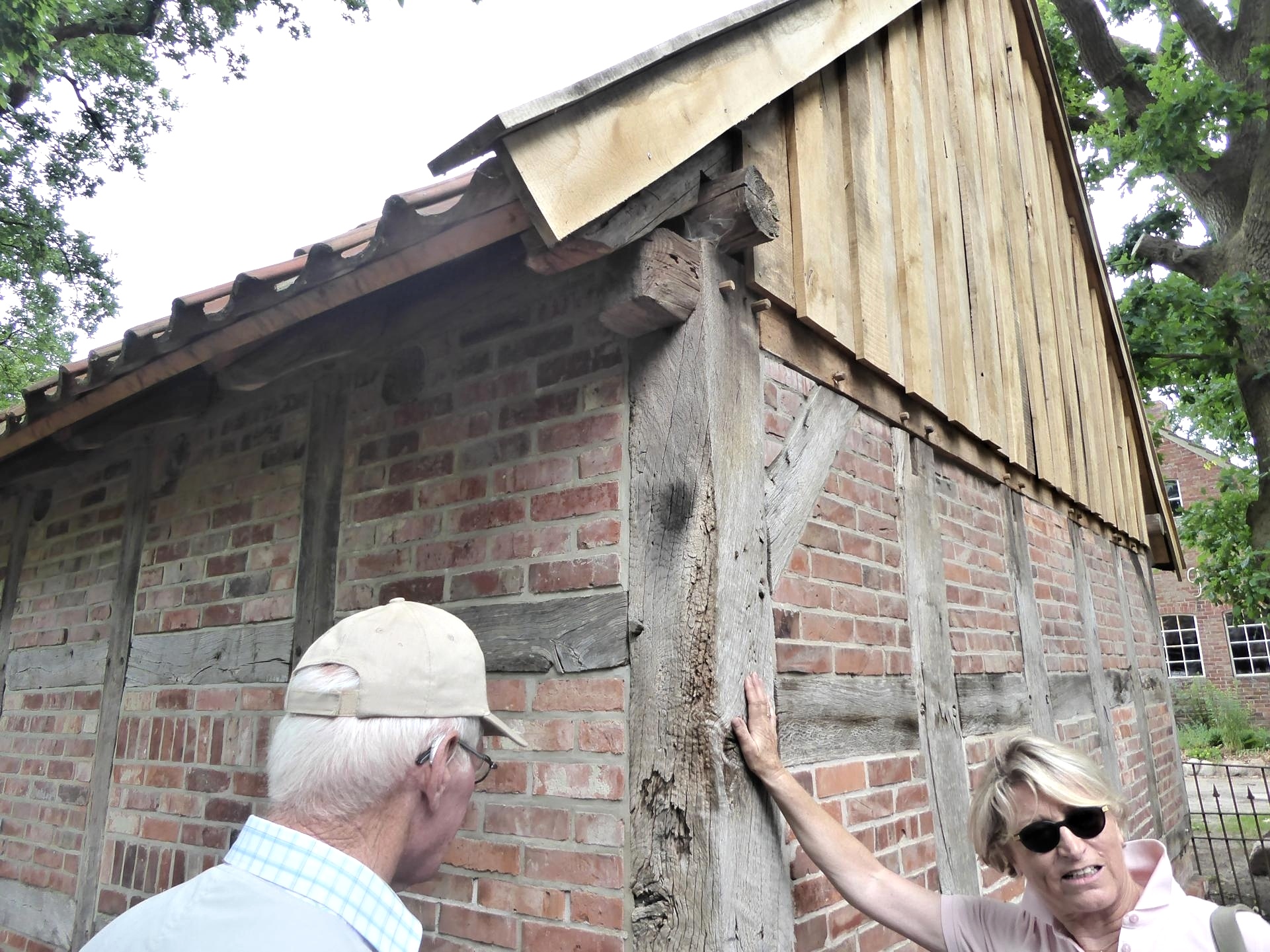 Die Gästeführerin machte uns auf die Bedeutung der großen Türen als äußeres Zeichen des Reichtums des Eigentümers und auf die Eulenlöcher oben in den Giebeln aufmerksam. Eulen waren geschätzte Kammerjäger