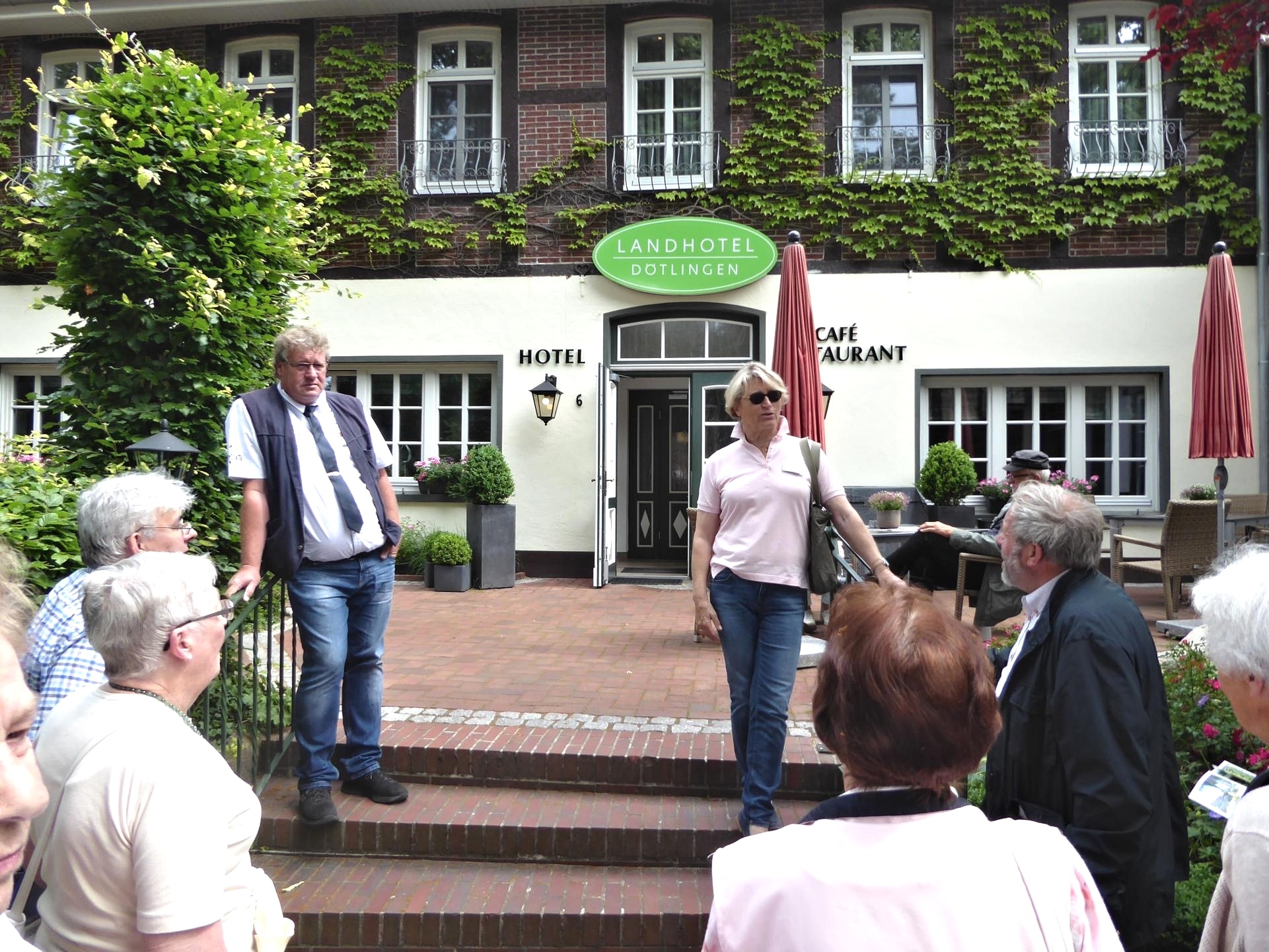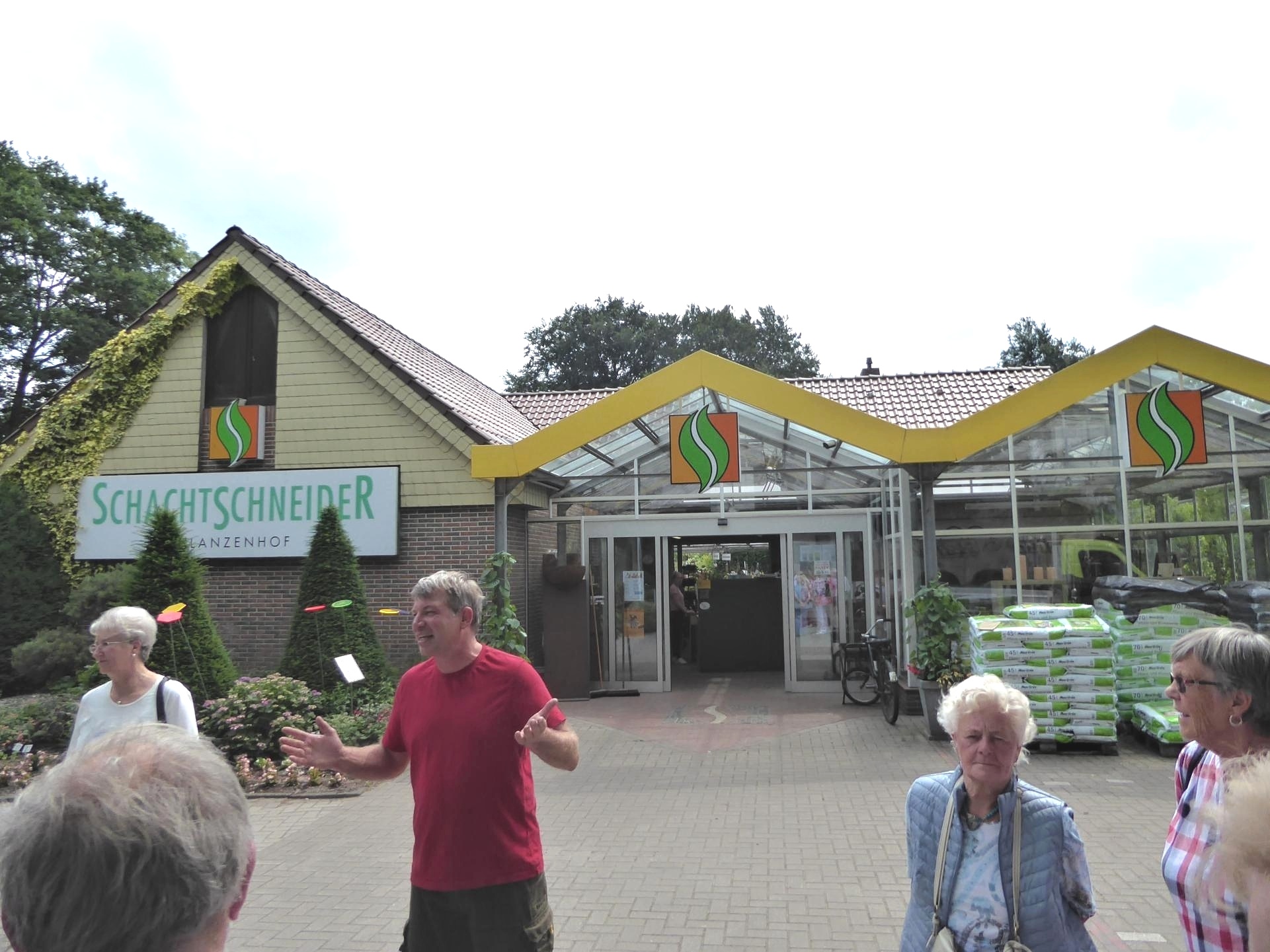 Im Landhotel konnten wir uns dann bei einem reichhaltigen Mittagessen mit Spargel, Schinken, Schnitzel, Kartoffeln, Rührei und Soßen stärken. Weiter ging es ins nahegelegene Aschenstedt zum Pflanzenhof Schachtschneider, wo der Firmenchef Olaf Schachtschneider Besonderheiten vorstellte. Er hat für seine vielen Auslandsreisen zu anderen Pflanzenhöfen ein typisches norddeutsches Mitbringsel züchten lassen, die robuste Beetrose „Moin Moin“. Gern gekauft wird das „Spanische Gänseblümchen“ wegen der fast 8-monatigen Blüte.
