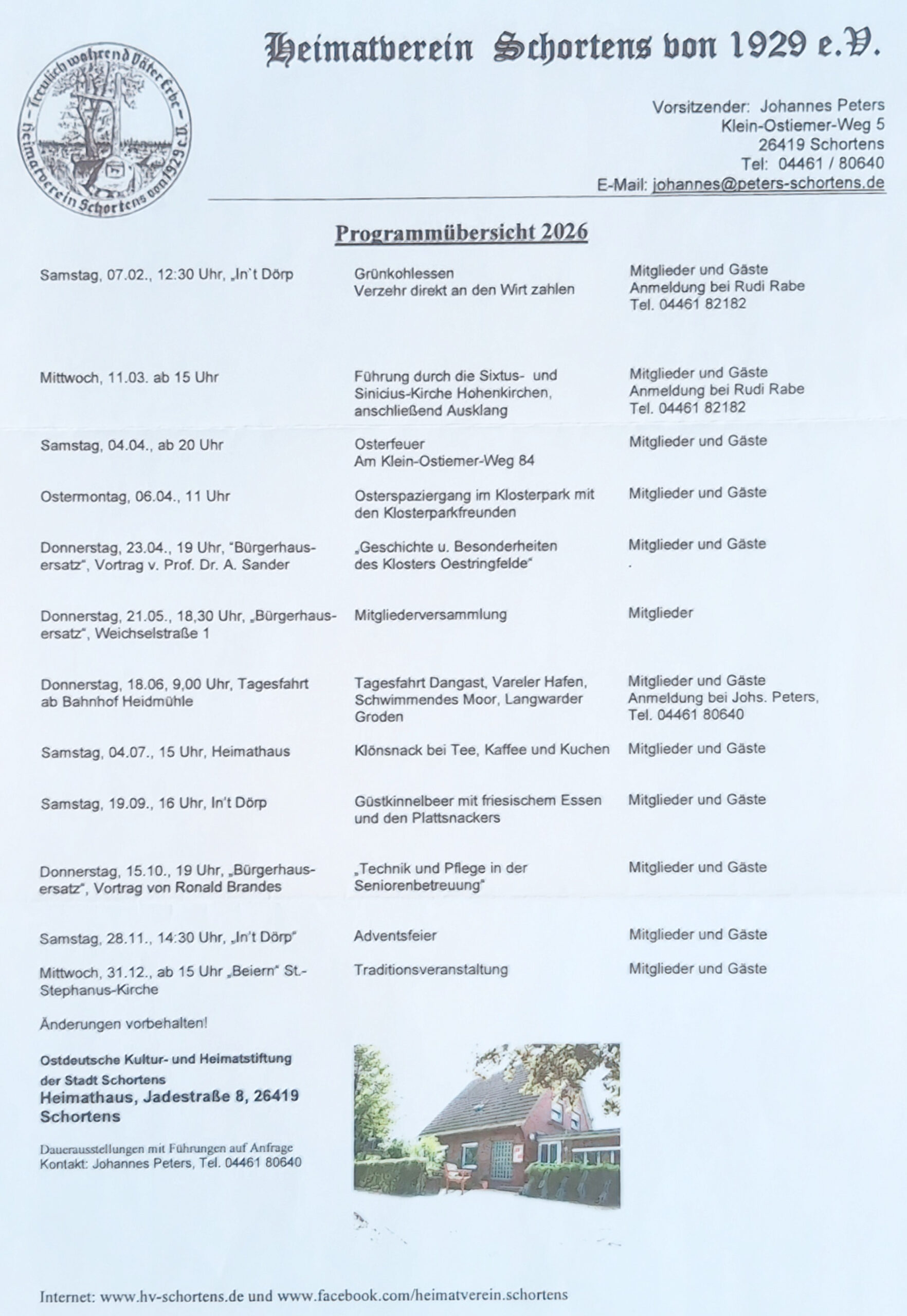 | Donnerstag, 23.04., 19.00 Uhr, Weichselstraße 2, Vortrag von Prof. Dr. Sander | Vortragsveranstaltung: „Geschichte und Besonderheiten des Klosters Oestringfelde“ | Mitglieder und Gäste |